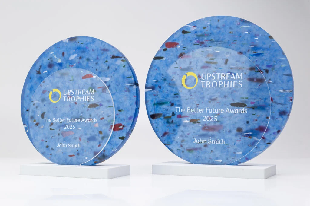Completing the trophy is an acrylic accent that offers limitless personalization options. Made from recycled acrylic sourced from materials such as recycled signage and windshields, the full-color printing brings your unique vision to life against the backdrop of the trophy’s striking materials. This customization feature ensures that each Eclipse Trophy is a one-of-a-kind testament to individual excellence and contributions.