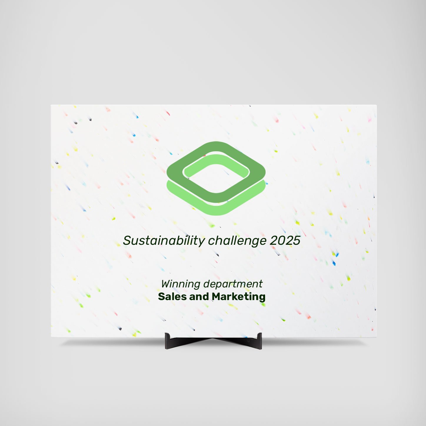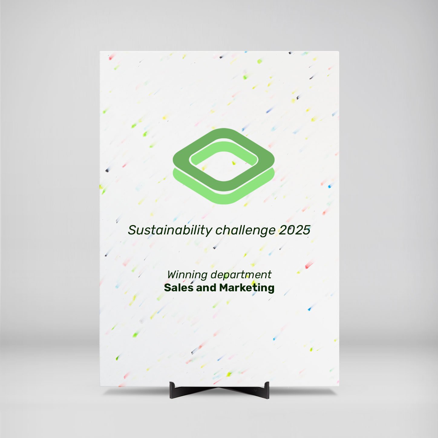 Choose the Cool Confetti award plaque to celebrate milestones with color, creativity, and a sustainable spirit.