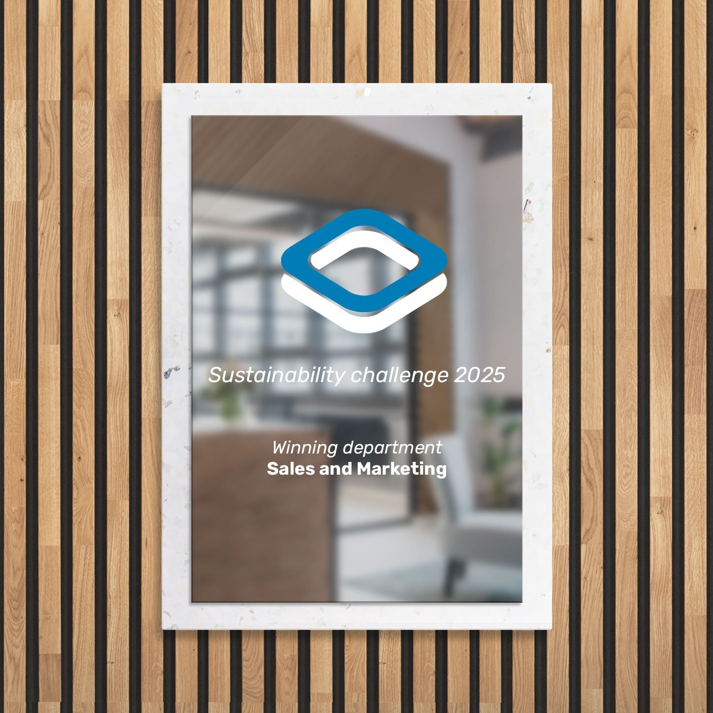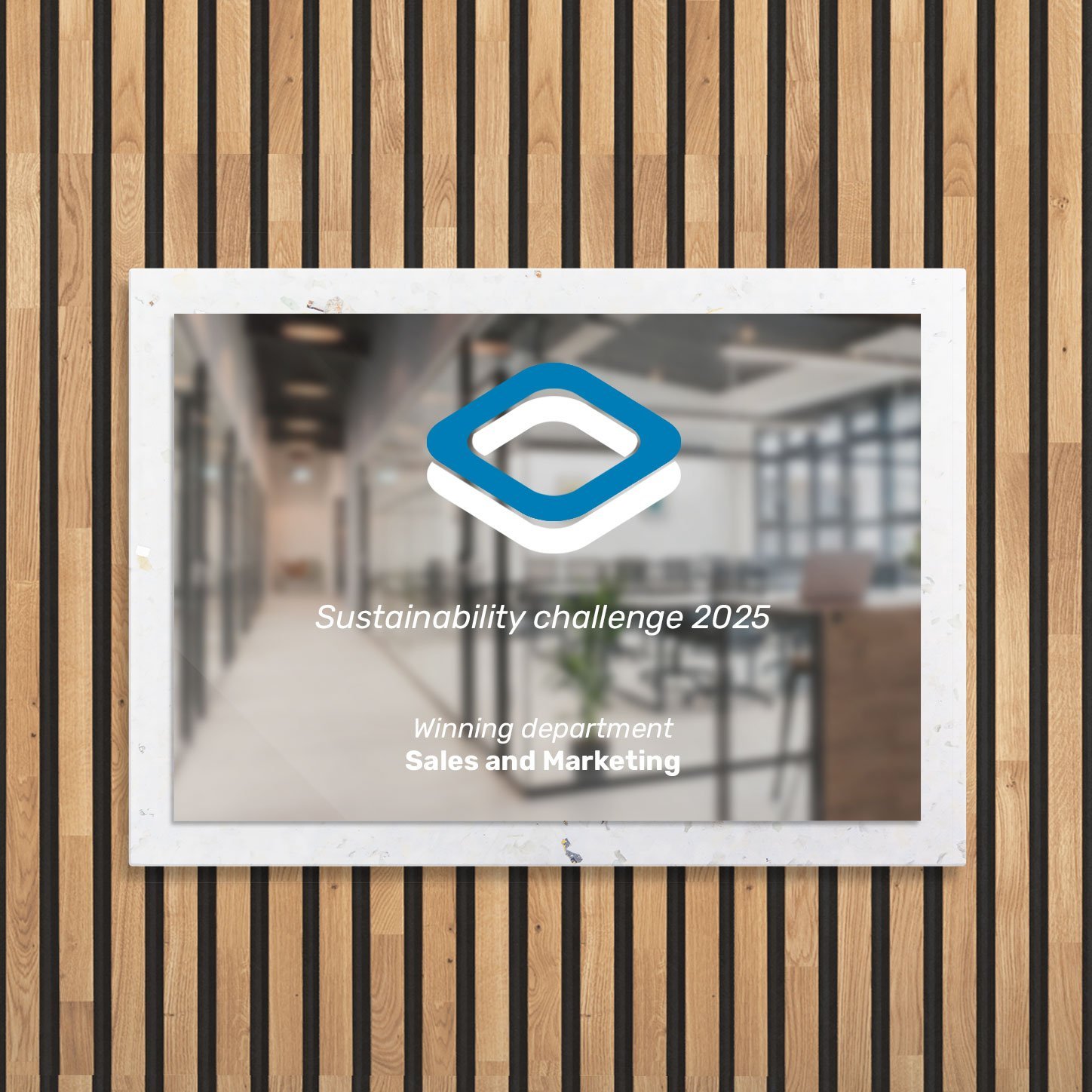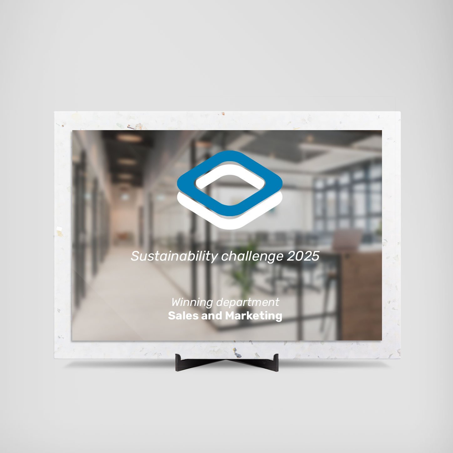 Whether displayed as a striking wall plaque or presented at a meaningful event, this award plaque offers a clean yet bold aesthetic that blends sustainability with sophistication.